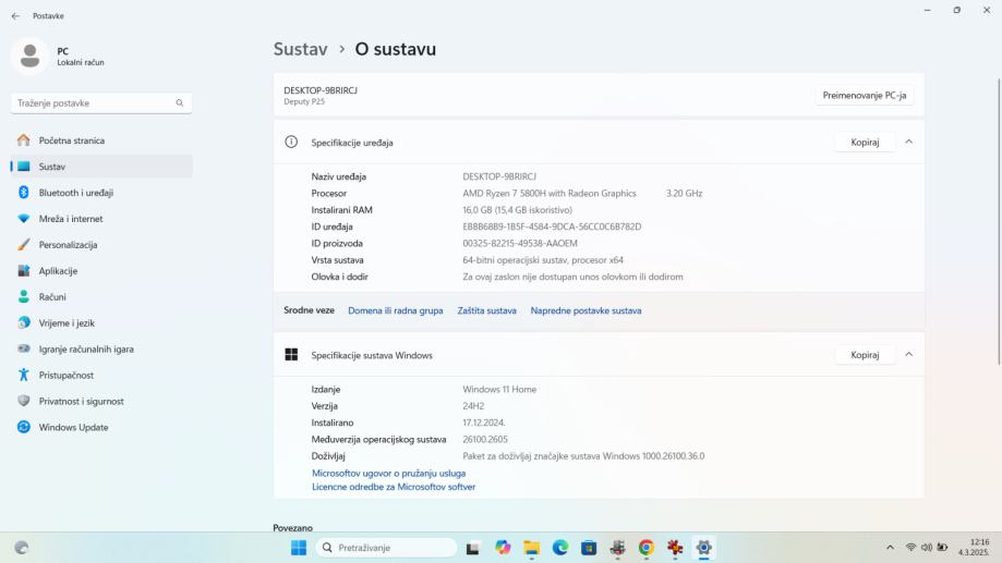 Instaliran originalni program Windows 11 Home i svi prateći programi.