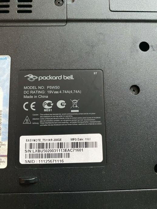 Packard Bell Easynote TS11HR Notebook Laptop 4GB Ram i7 580GB HDD 15,6" 2Ghz