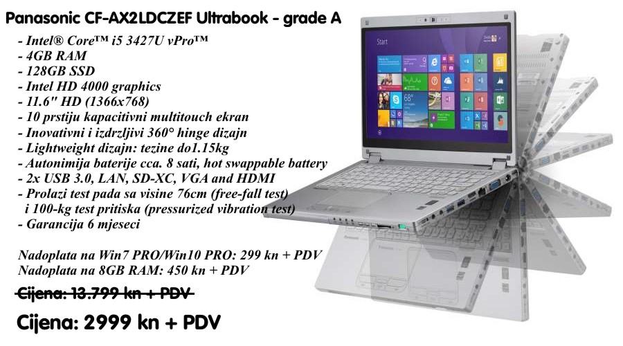 Panasonic ToughBook CF-AX2 12" Multitouch i5-3427/128SSD/4GB - 80% jef