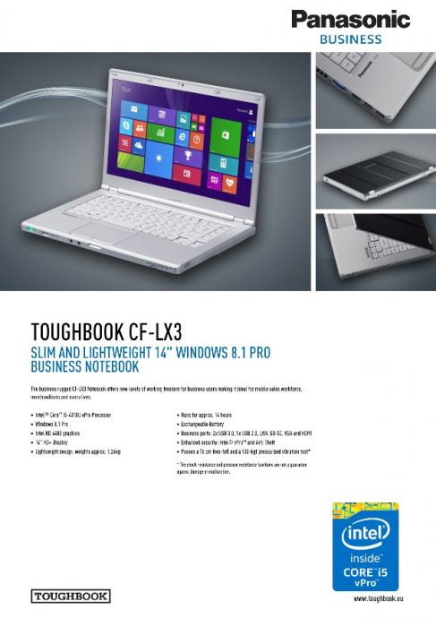 Panasonic ToughBook CF-LX3 i5-4310/8GB/128SSD/14" autodijag-IP55