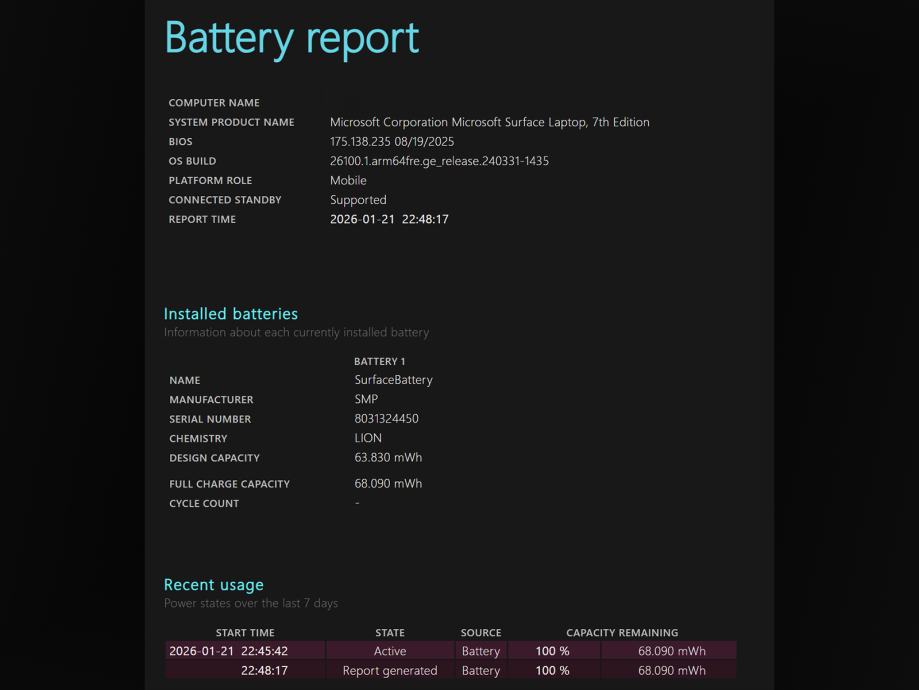 Laptop je upaljen dva puta. Prvi put da se dovrši postavljanje Windowsa. Drugi put da napravim screenshotove za oglas. Stanje baterije je naravno 100%. Jednom bio na punjaču kod instalacije. Ekran na dodir. Stvarno vrhunsko iskustvo.