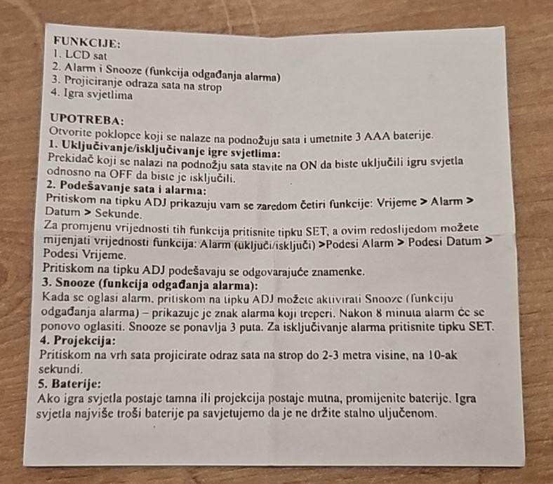 Prodajem budilicu, alarm i odgoda alarma, LED noćno svjetlo izmjenjivih boja s projekcijom trenutnog vremena na stropu.
