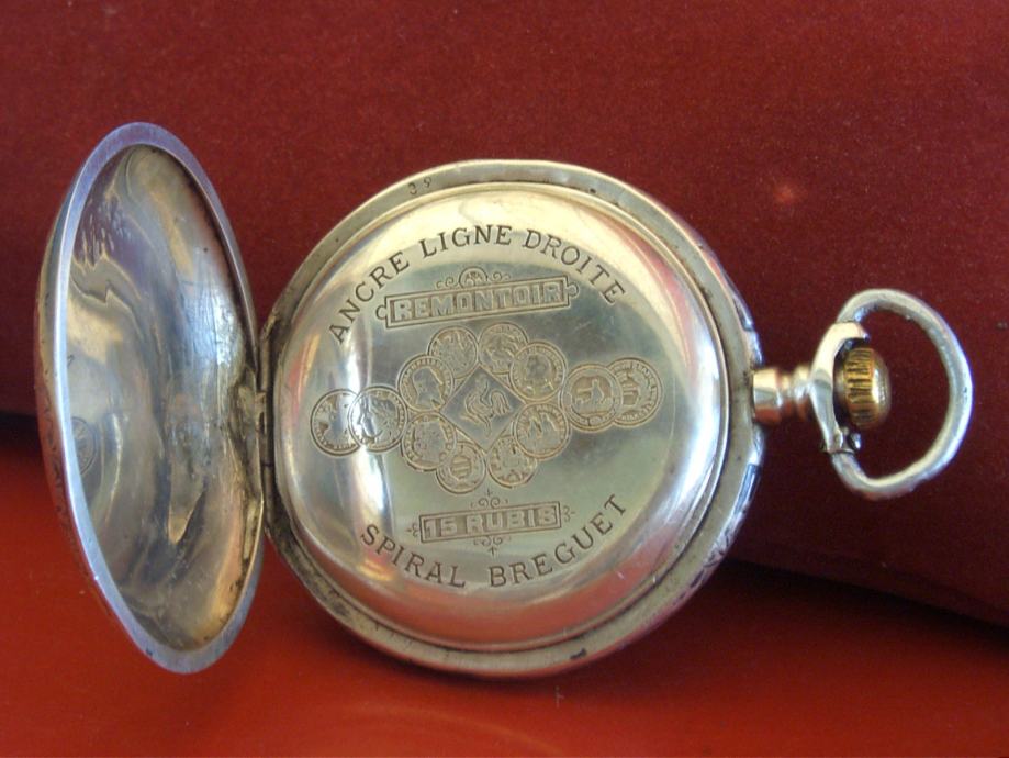 RIJETKI "AEBY@LANDRY REMONTOIR ANCRE LIGNE DROITE 15 RUBIS...BREGUET SPIRAL...1890 godina...kućište srebro 0.800 sa zlatnim ornamentom AUSTRO-UGARSKE CARSKE KRUNE... potpisani vrhunski mehanizam AEBY@LANDRI of Madretsch-Sweiz...porculanski cifer, rimske brojke, stilske zlatne kazaljke...promjer 51 mm bez krunice, debljina 16,5 mm...