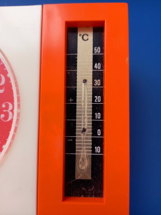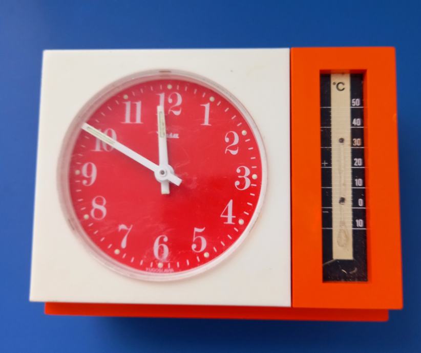 Stari mehanički sat marke Insa (Yugoslavija), s ugrađenim termometrom iz sedamdesetih godina