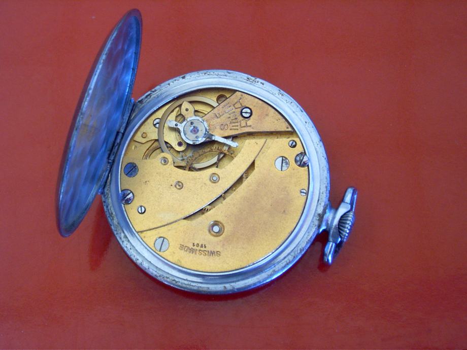 RIJETKI ART DECO DŽEPNI SAT LANGENDORF WATCH CO.-UHRENBABRIK LANGENDORF SA SWISS-vintage "LANCYL"-5 jewels...vojni tip...chrom-nickl kućište.srebreni ciferplat, iluminirani arapski brojevi...promjer 45mm bez krunice...ispravan.