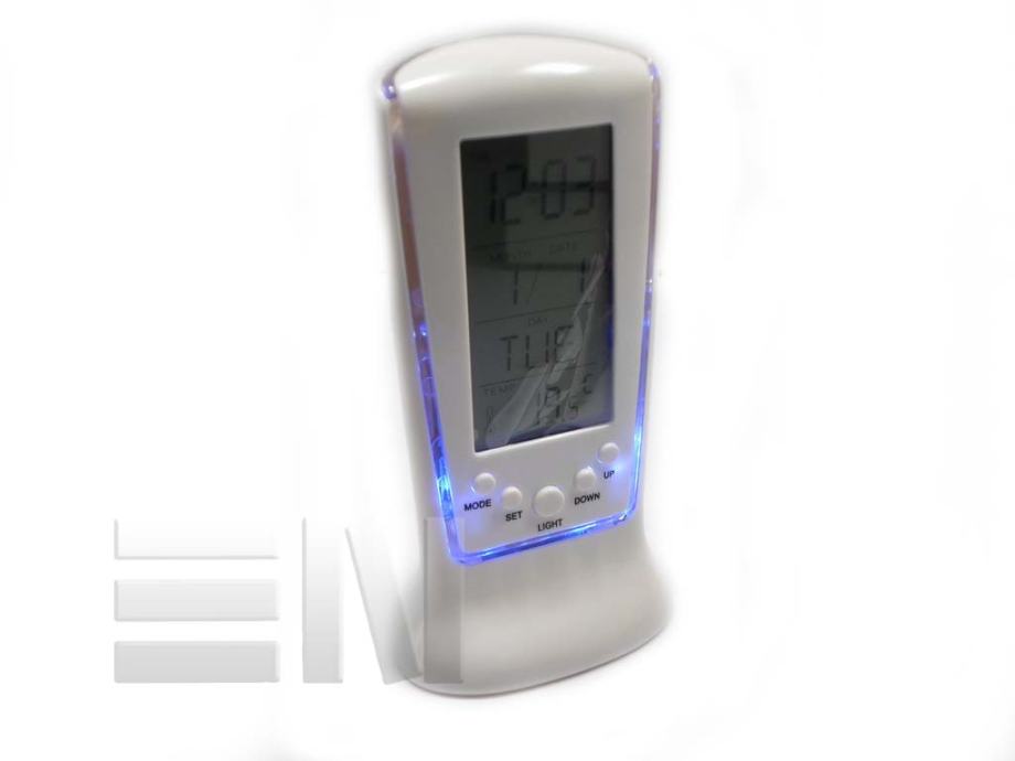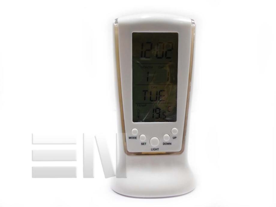 Prikazuje 12-satni i 24-satni format, kalendar, alarm i temperaturu.