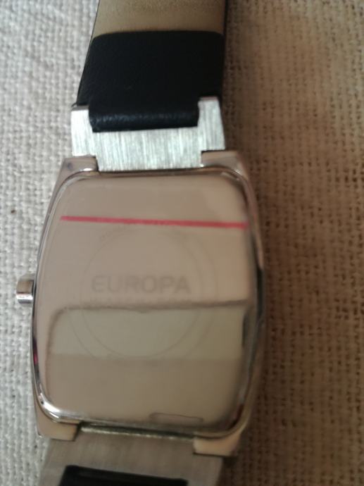 Ženski ručni sat na baterije, Europa Watch com. Potpuno nov sa pripadajućim novim crnim kožnim remenom. Sat veličine 3,5 x 2,5 cm.