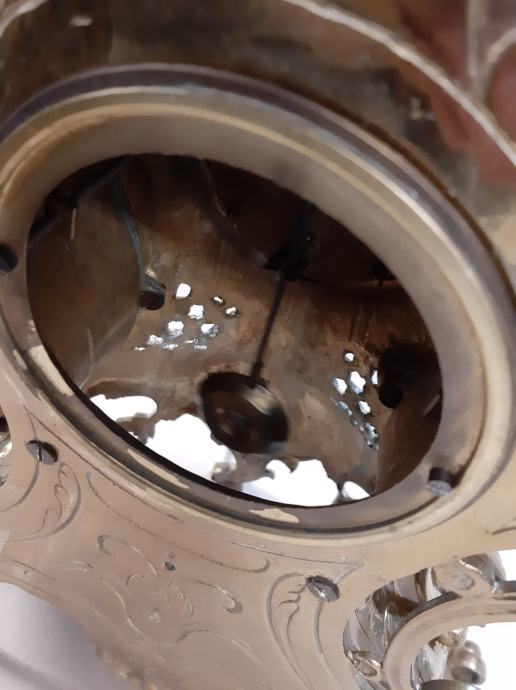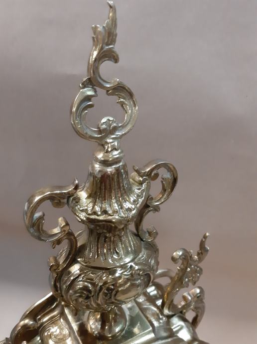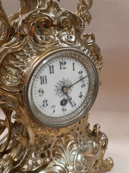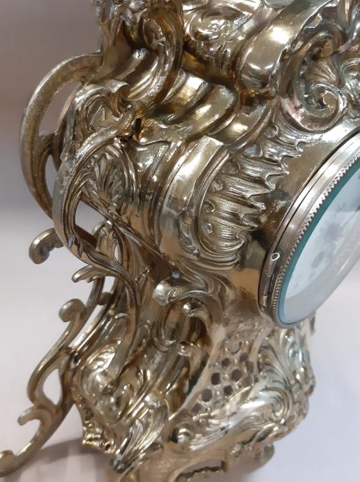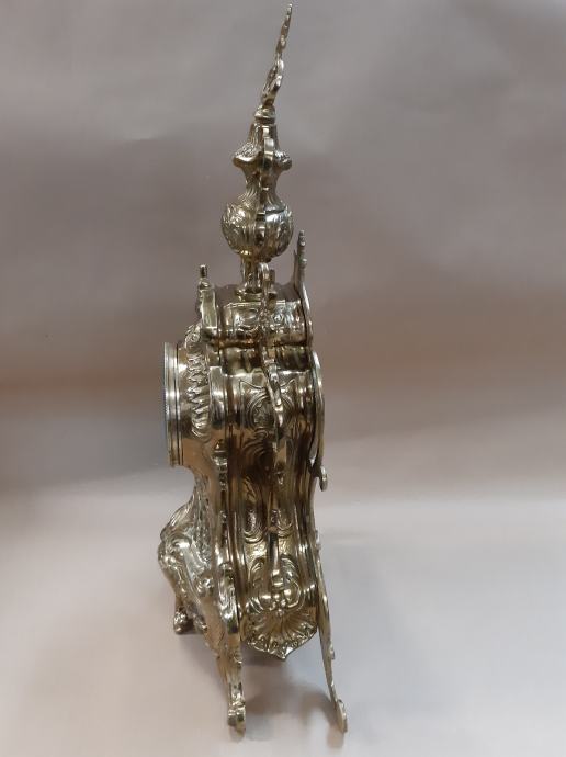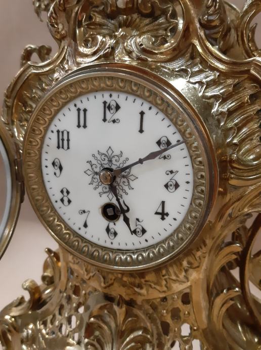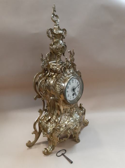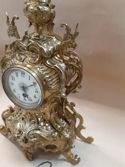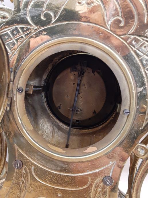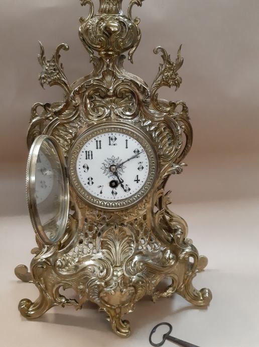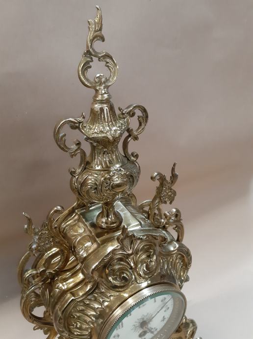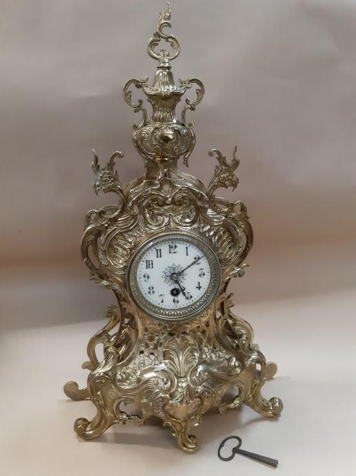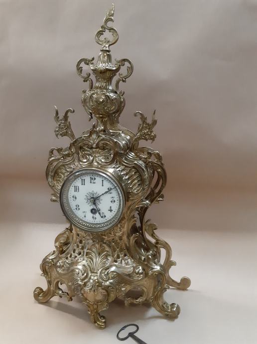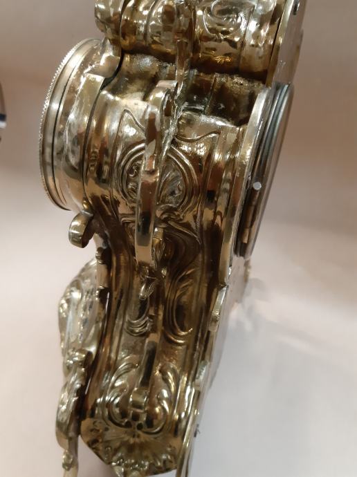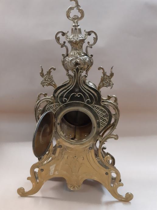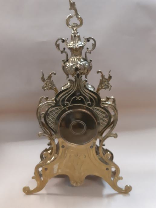 Veliki sat, metalno kučište, vjerojatno mesing, težak, visina 54 cm od nogica do špice. Sat je u potpunosti ispravan. Cijena za prodaju je fiksna.. Informacije preko njuškalo poruka.