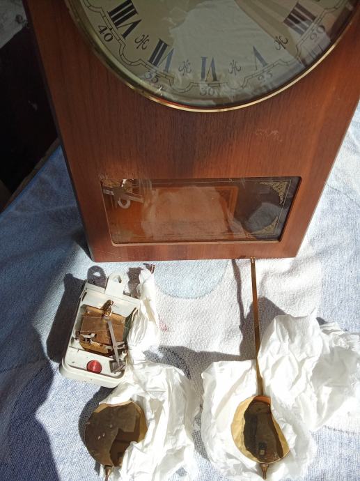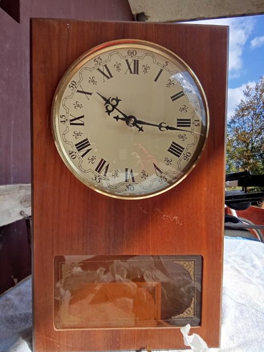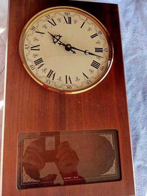 Prodajem zidni sat u drvenom kućištu s klasičnim brojčanikom. Sat ima rimske brojeve i zlatni okvir oko brojčanika. Kućište je izrađeno od tamnog drveta, a ispod brojčanika nalazi se stakleni prozorčić s ukrasnim detaljima. Sat ima mehanizam s utezima i klatnom za rad.