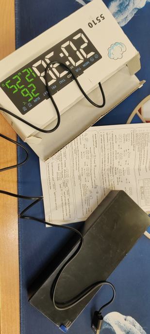Sat... Na punjenje kao mobitel, a može i na baterije.. Veličina 18 dužina/6,5 visina/3,2 širina... Novo... 10 eura