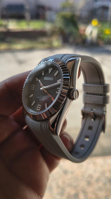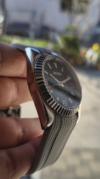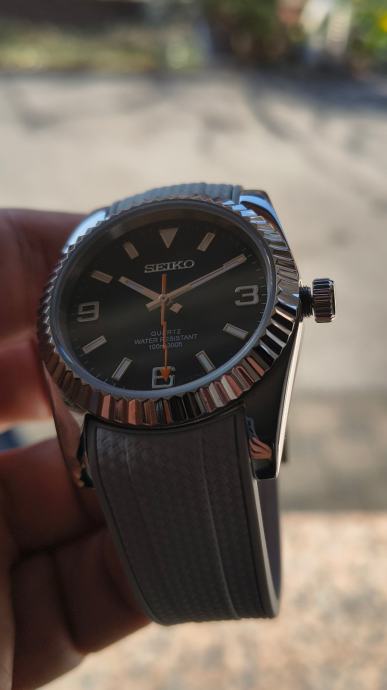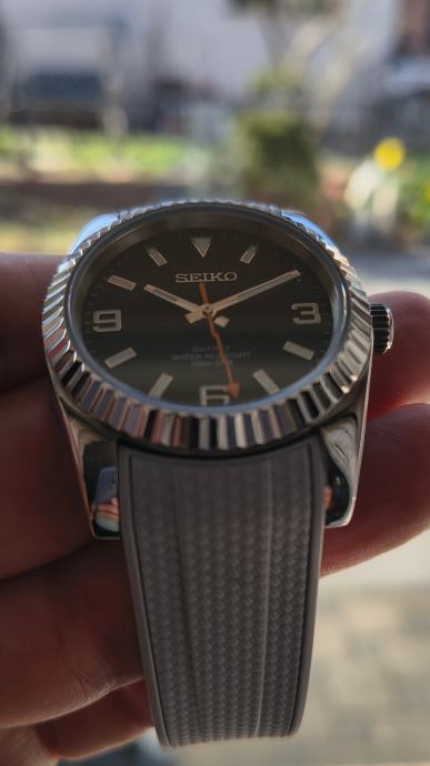 Prodajem Seikomod Explorer sat s quartz mehanizmom. Radi se o custom izradi baziranoj na Seiko platformi, s crnim brojčanikom, srebrnim bezelom, srebrnim kazaljkama te narančastom sekundnom kazaljkom. Sat dolazi na sivoj gumenoj narukvici. Stanje je novo bez etikete.