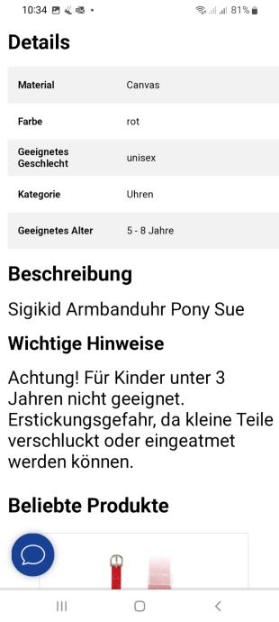 Sigikid Pony Sue dječji ručni sat iz Njemačke.