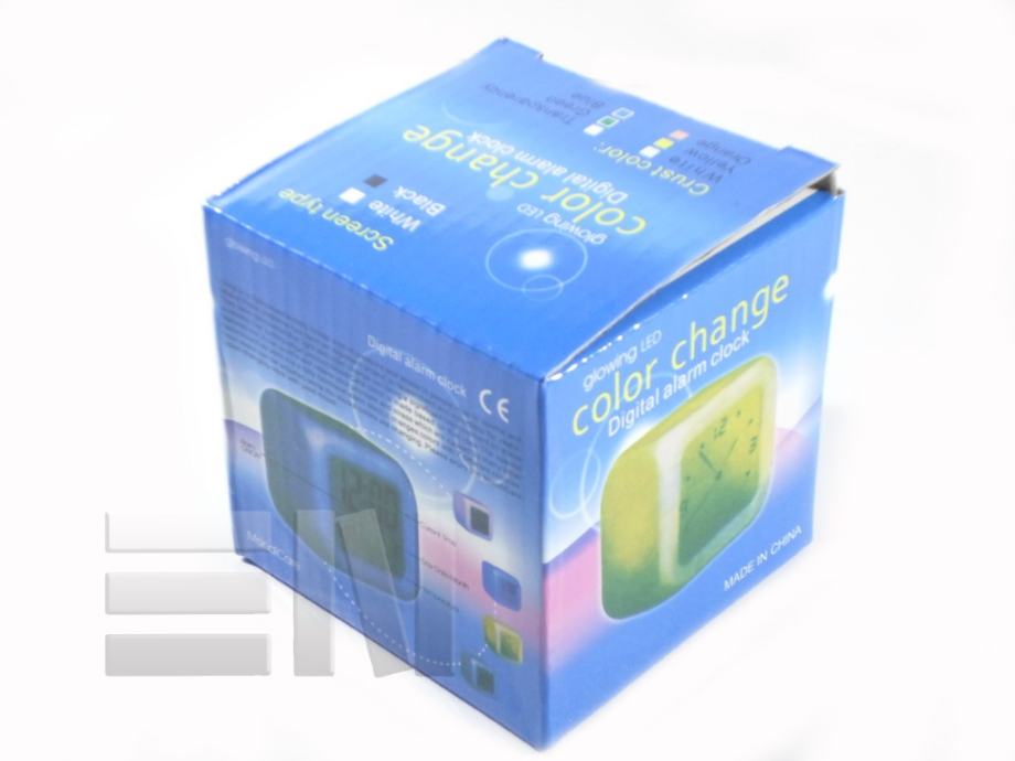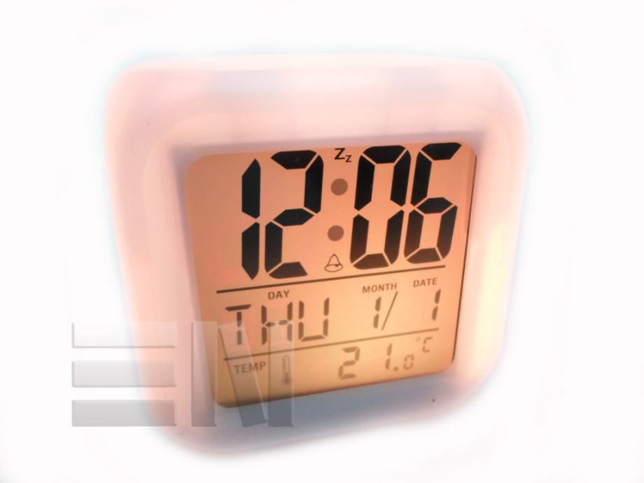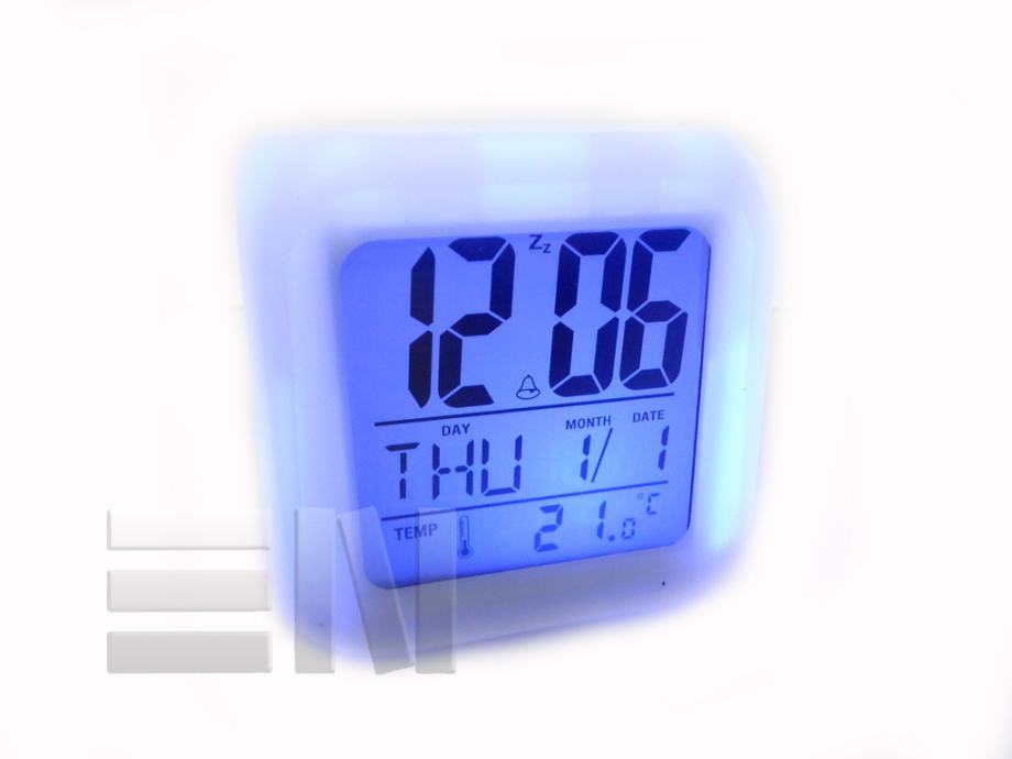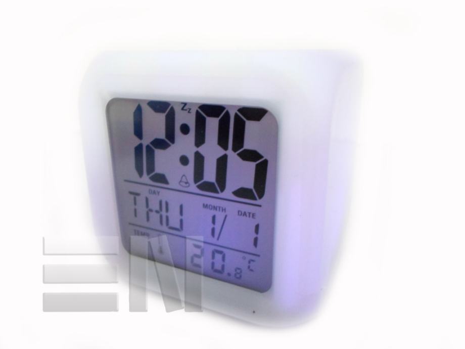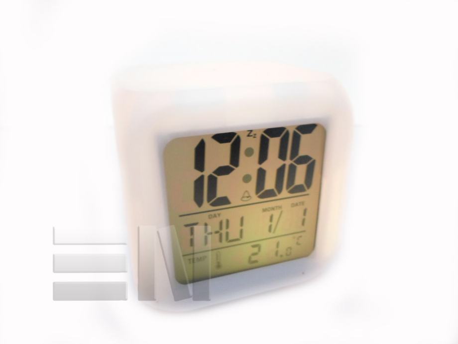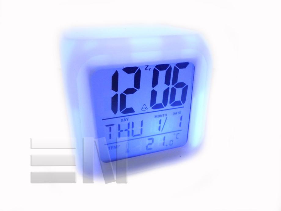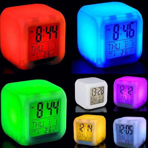 Svjetleći LED digitalni sat u obliku kocke s alarmom, pritiskom na sat počinje svijetliti izmjenjujući 7 boja.