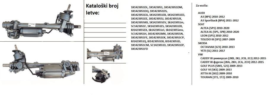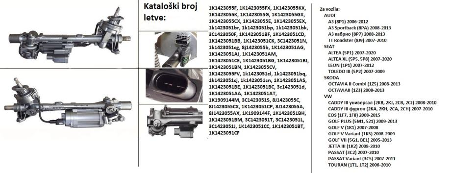 Elektro letva volana za Audi A3, Seat Altea, Seat Leon, Seat Toledo, Skoda Octavia, Vw Caddy, Vw Golf, Vw Jetta, Vw Touran :