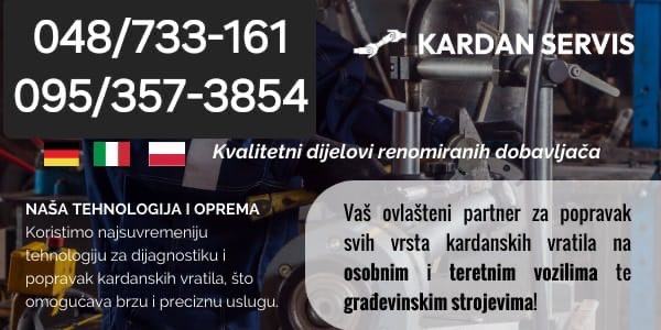 Nudimo servis i prodaju kardanskih vratila za sve vrste osobnih automobila, tegljača, autobusa, dostavnih i teretnih vozila te građevinskih strojeva na kardanski pogon. Koristeći najnoviju tehnologiju za rad nudimo uslugu montaže i demontaže kardanskih vratila te mogućnost nabave novih kardana, uz najpovoljnije cijene na tržištu. Naš stručni tim s višegodišnjim iskustvom rada u Njemačkoj stoji Vam na raspolaganju za sve upite.