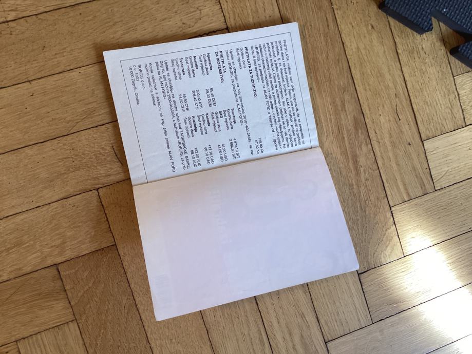 Stanje 4/5, malo grbav, dole desno naslovnica malo lošija. Sa unutrasnja strane je u tom uglu 1 cm scotch mat ljepljive trake kao pojačanje lista. Ostalo ok kao na slici, kompaktan, uredan. Malo valovit na dodir na naslovnici, ne vidi se na slikama.