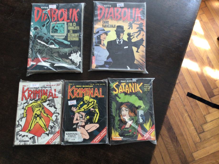 Diabolik u vrećici extra 4.5€ Kom, kriminal i Satanik u vrećici 4€ kom, novo, neotvarano, odlično stanje. (Zadnja foto u oglasu)