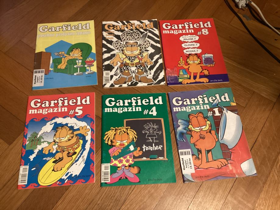 Imam i tvrde uveze, tj garfield knjige, od 6€ kom na više, i Snoopy tvrdi uvez album=18€ , i garfield rijetka izdanja razna, i 1 na engleskom A4 garfield tribute=30€