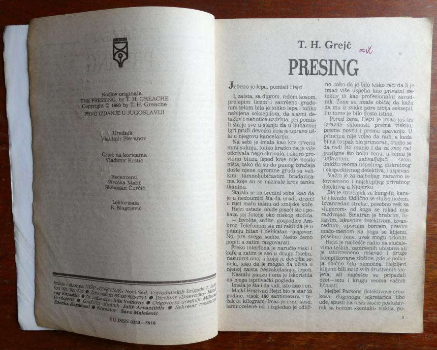 Detektivski roman iz 1990. godine. Stanje kao na fotografijama.
