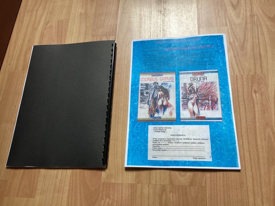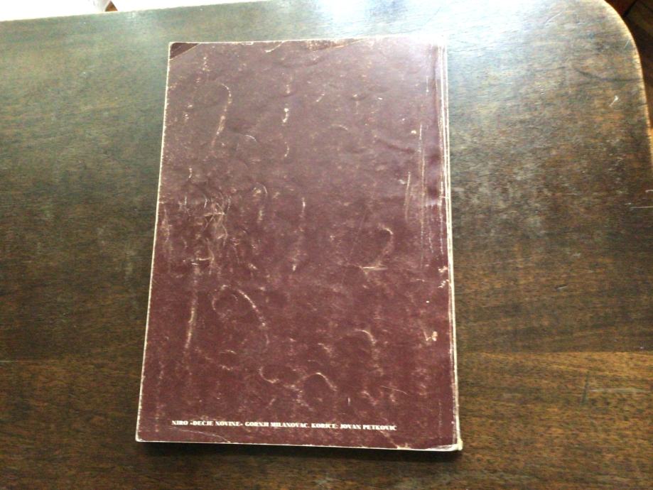 objasnjenje: povez unutrasnjih stranica=Scotch ljepliva traka DYS= improvozirani ‘ uvez’ = , bocno vanjski povez( hrbat) i cijela ‘ glatka’ povrsina plave poleđine je sjajni prozorni selotejp sirine 5 cm. .