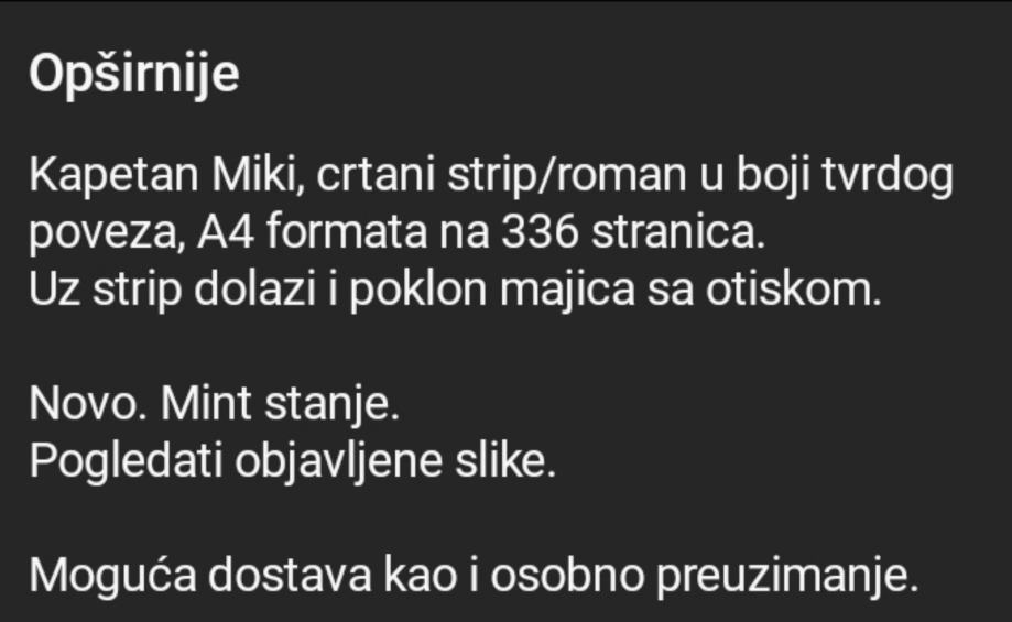 Kapetan Miki, crtani strip/roman u boji tvrdog poveza, A4 formata na 336 stranica.
