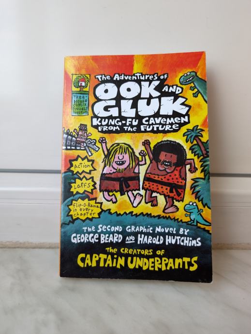 The Adventures of Ook and Gluk: Kung-Fu Cavemen from the Future is a graphic novel written by Dav Pilkey, the second spin-off of the Captain Underpants series. The book is credited to Captain Underpants characters "George Beard" as the author and "Harold Hutchins" as the illustrator. The plot of the book involves George and Harold, the lead characters from Pilkey's Captain Underpants series, complaining that scientists do not know everything, so they make a comic book about science facts.