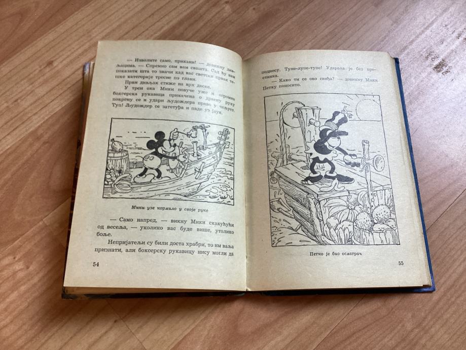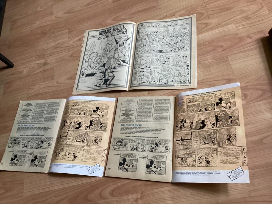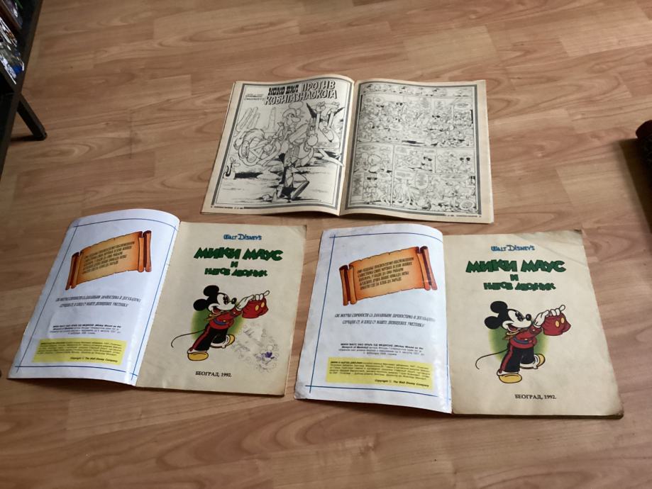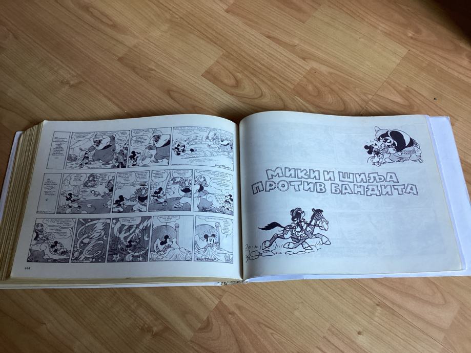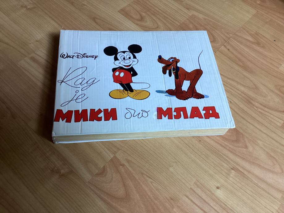 6) kad je miki bio mlad ( ćirilica) 45€, stanje je vrlo dobro ali omot dodan tj, reprint naslovnice, poleđine i hrnata je isprintan i losije kvalitete kartona ( vidi slike, malo se i savija) .Nije za zahtjevnije kolekcionare, za čitanje vrlo dobar, bez večih mana( strip je ćist). Malo šaranja na najavnoj ilustraciji, unutra najavne steanice malo restaurirane, tu i tamo mikro mrljice unutra, , stranice 463-480 su dodane kopije, nisu orginal, primjeti se po svjetlijoj boji stranica. Ovo rijetko izdanje ne postoji osim na čirilici. 480 strana stripa.