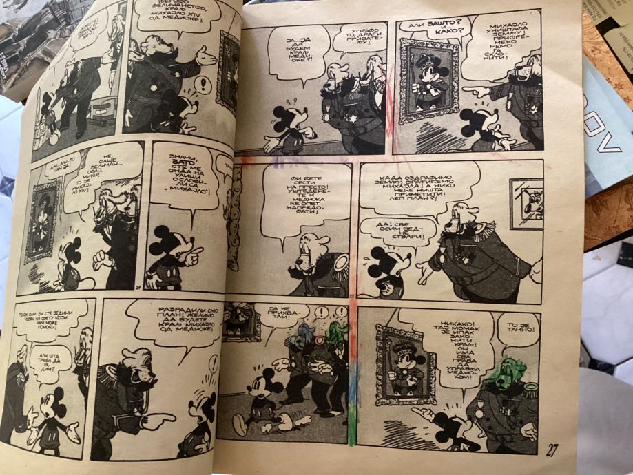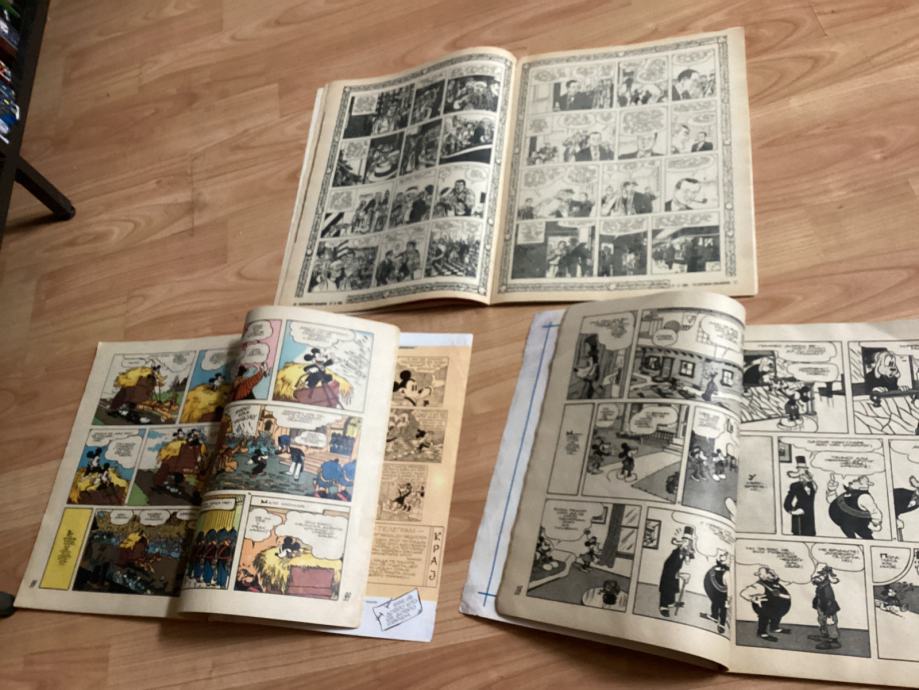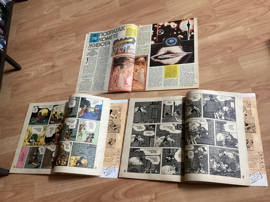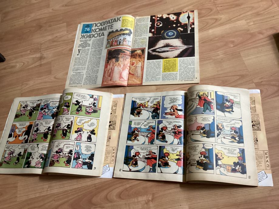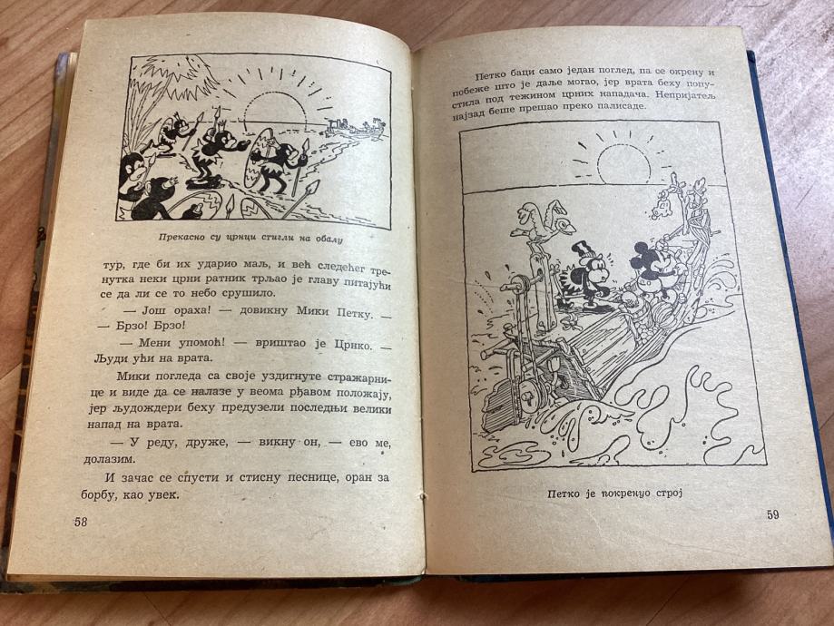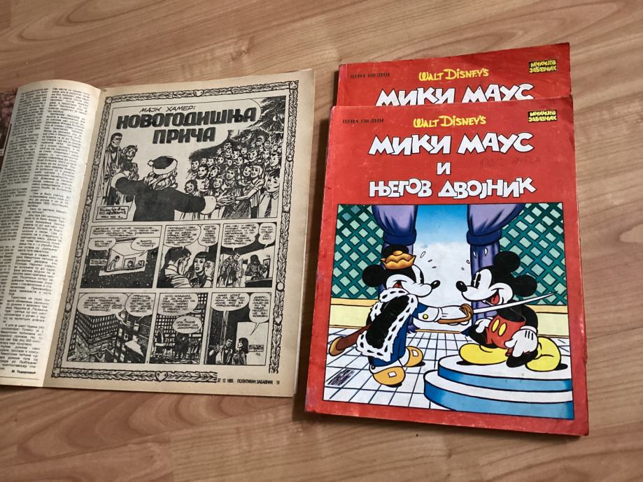 6) kad je miki bio mlad ( ćirilica) 45€, stanje je vrlo dobro ali omot dodan tj, reprint naslovnice, poleđine i hrnata je isprintan i losije kvalitete kartona ( vidi slike, malo se i savija) .Nije za zahtjevnije kolekcionare, za čitanje vrlo dobar, bez večih mana( strip je ćist). Malo šaranja na najavnoj ilustraciji, unutra najavne steanice malo restaurirane, tu i tamo mikro mrljice unutra, , stranice 463-480 su dodane kopije, nisu orginal, primjeti se po svjetlijoj boji stranica. Ovo rijetko izdanje ne postoji osim na čirilici. 480 strana stripa.