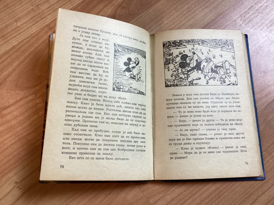 3) zlatna knjiga , miki kao Robinzon , 20€, čirilica, miki guliver i zemlja kepeca, 160 stranica, tvrdi uvez, stanje 4+, vrlo dobro,1954 g