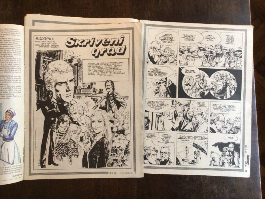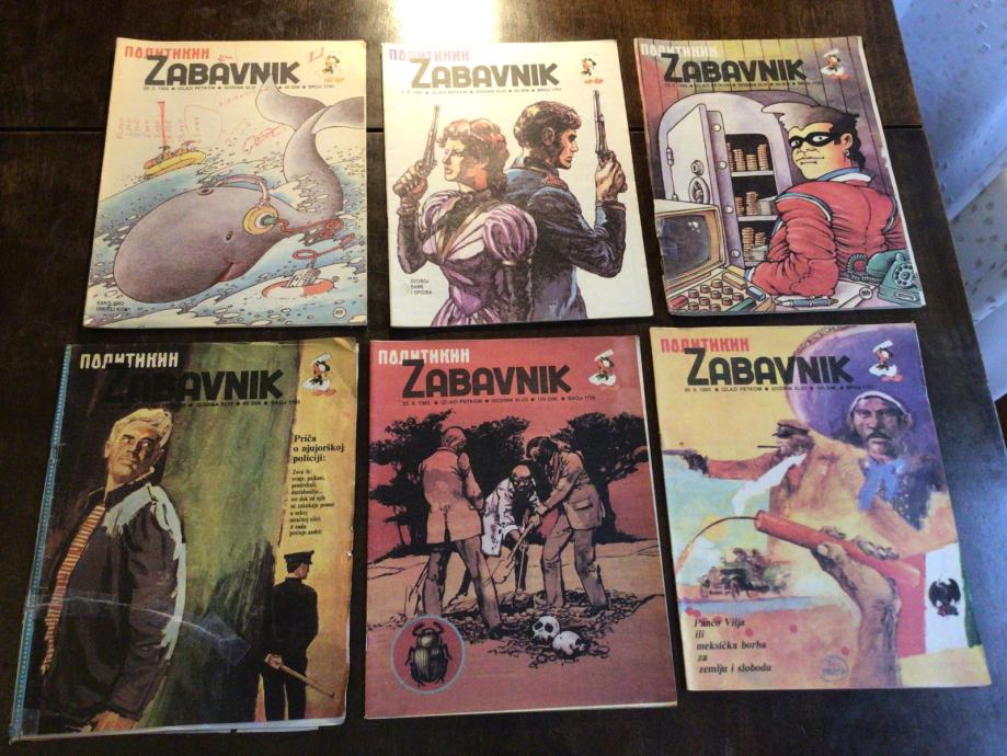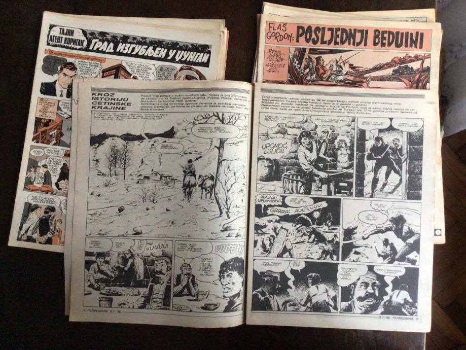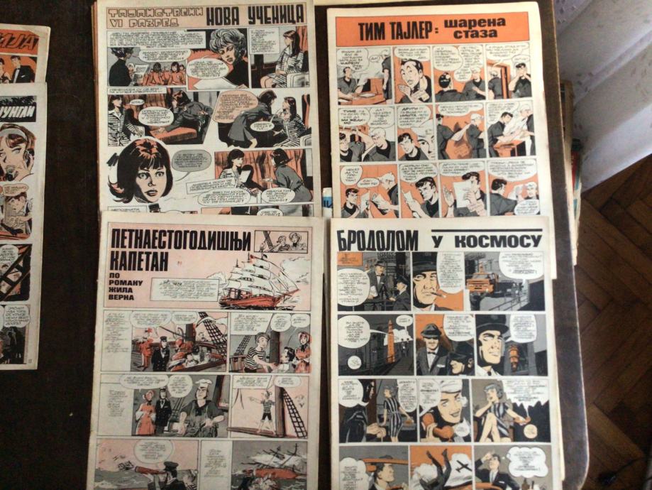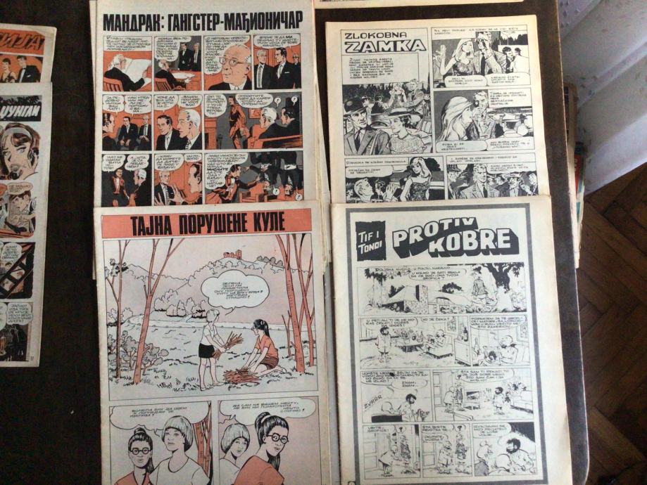 Dodatak: ( vidjeti zadnje fotografije u oglasu): stripovi povađeni iz raznih godišta politikinog zabavnika. Odlično stanje. 10 kn komad. Fleš Gordon i tif i tondi je 15 kn. Oba za 25 kn. Sva ćirilica je 5 kn kom. Ili 3 kn kom ako uzmete svih 11 ćirilićnih stripova. Većina ćirilićnih ima i Popaj strip od 1 table (u tonovima crvene boje)na zadnjoj strani. Sve su formati velikog politikinog zabavnika, nema malih formata.