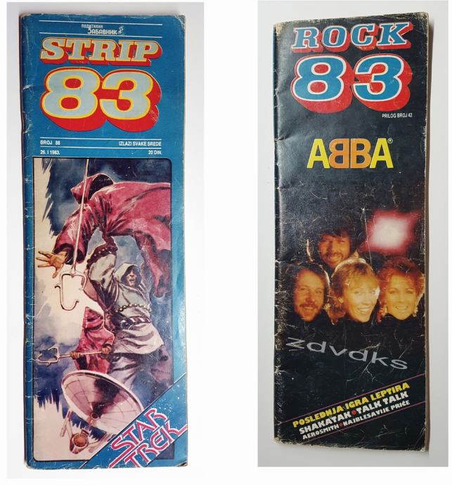 s prednje strane je strip: STAR TREK, sa stražnje strane je o rok grupi ABBA