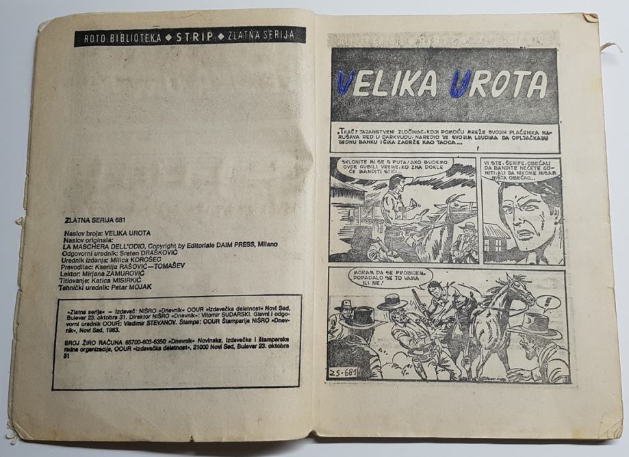 STRIP ZAGOR br. 681, VELIKA UROTA iz 1983 g. -ZLATNA SERIJA, NIŠRO