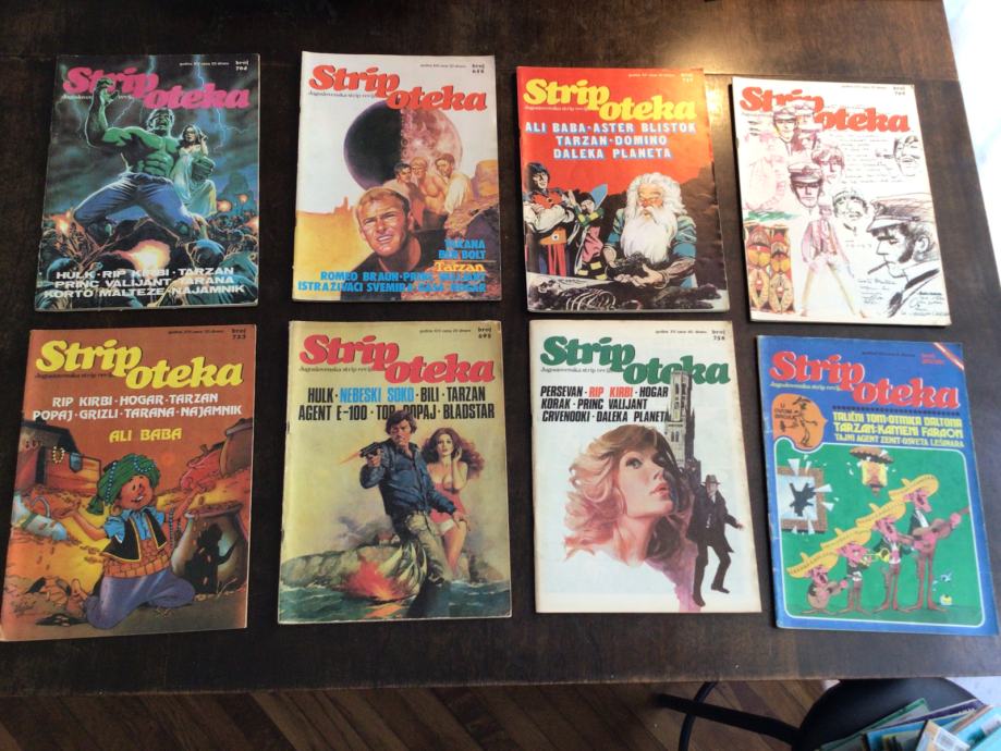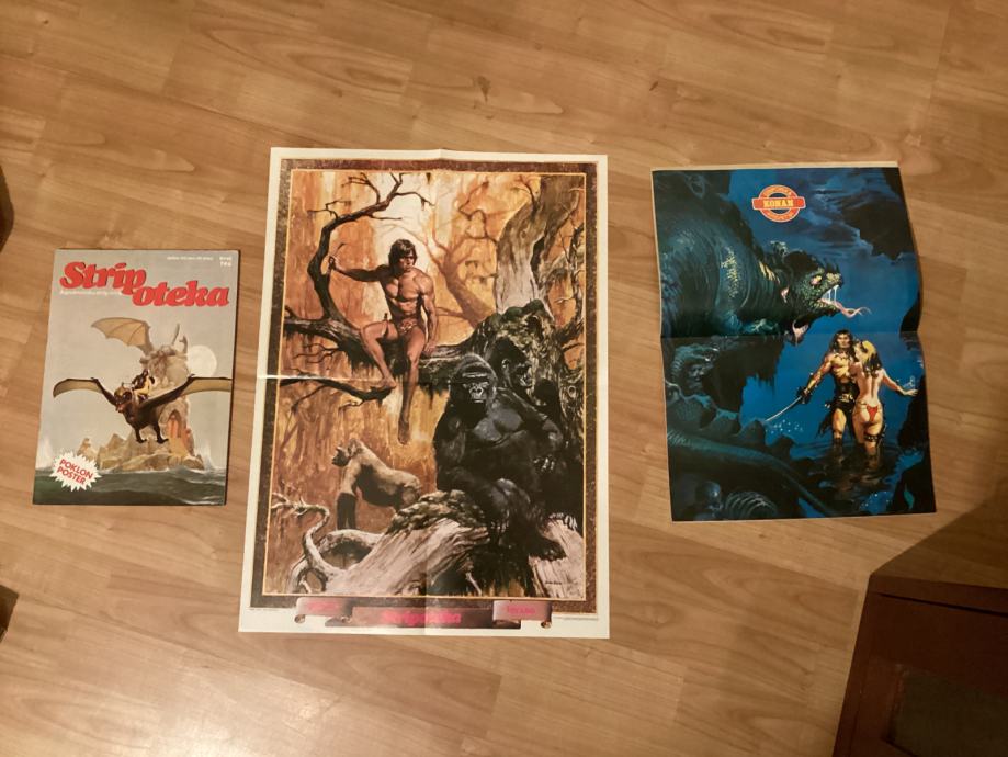 Stripoteke sa posterom su 6-8€ kom osim gastona i najamnika, osim Tarzan poster 653=5€ Ili (722= je prodana) su ove poslikane sa posterom. Imam ih možda još. 666 i 675 su u 5- stanju. Zadnja fotografija u oglasu. Novo: poster Tarzana velikog formata iz broja 702 je ….samo poster, jako rijetko, ili 16€ sa pripadajucim stripotekom u 5- stanju. Stripoteka 662 sa konan posterom je 7€, 5- stanje. Imam jos i silver surfer poster stripiteku cca ….je ta kao i 800 sa posterom najamnika, samo poster najamnika je … Samo poster tarzana sa nožem i sa lavom je….