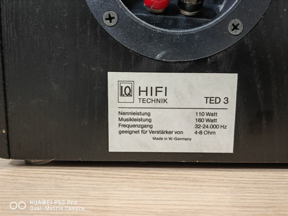 polovni samostojeci njemački zvucnici iq ,imaju dosta sitnih oštećenja od transporta,inače zvučno bez mane,naglašeni visoki i naglašeni niski tonovi.mrezica ostecena na jednom mjestu,vidljivo na slici. Moguća zamjena za druge zvucnike ili pojačalo.