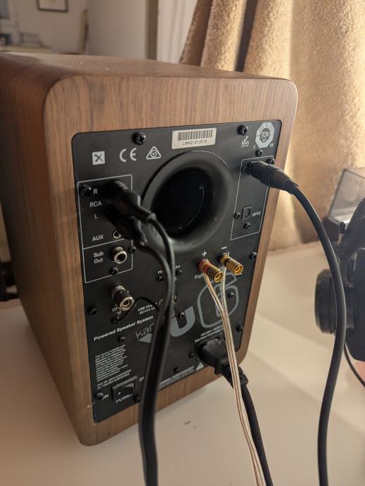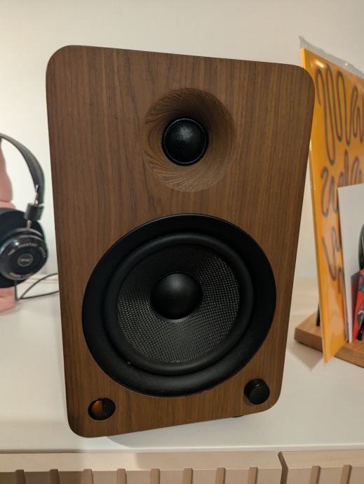 Prodajem Kanto YU6 aktivne zvučnike s drvenim finišem orah boje. 200W D class Bluetooth aktivni zvučnici sa 5.25" wooferom i 1" dome tweeterom.