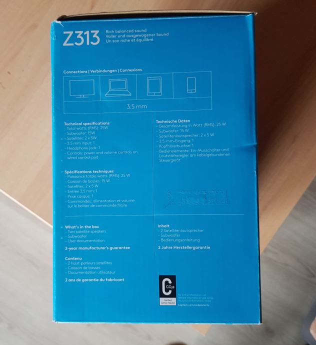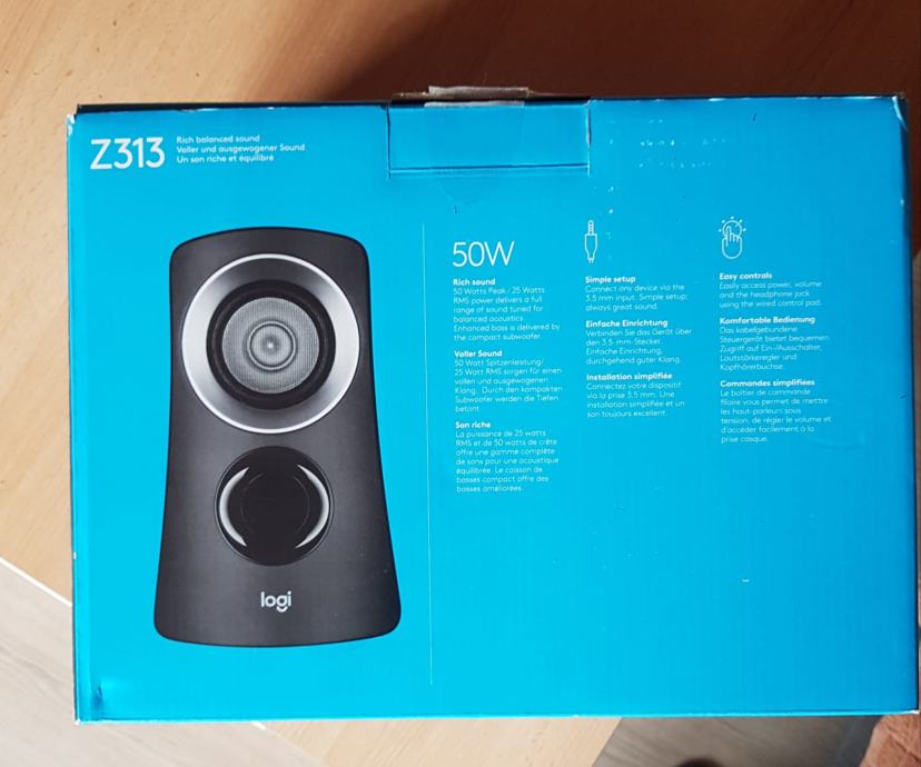 Logitech Z313 je 2.1‑kanalni sustav zvučnika koji se sastoji od: