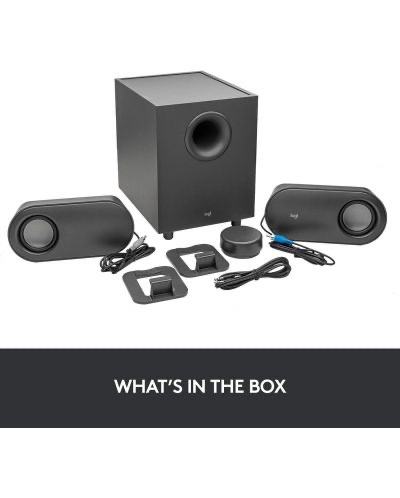 Elegantno mat crno kućište čini ove zvučnike vizualno atraktivnim, dok kompaktan dizajn omogućuje fleksibilno postavljanje na radne površine, police ili stolove. Logitech Z407 kombinira snagu, fleksibilnost i moderni dizajn, čineći ga izvrsnim izborom za sve koji žele moćan zvuk s naprednim opcijama povezivanja i upravljanja.