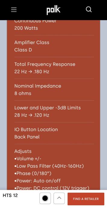 POLK HT12 SUBWOOFER