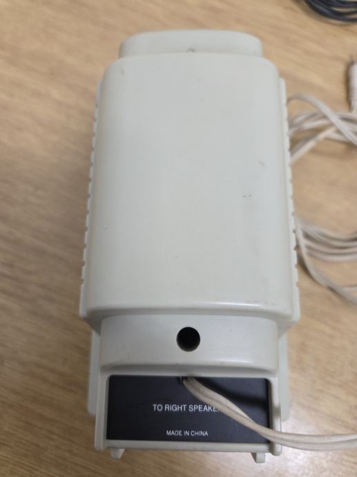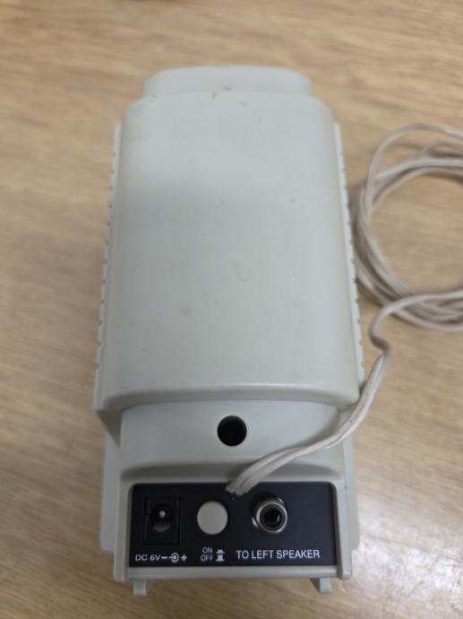 Prodajem Creative zvučnike za računalo. Radi se o setu od dva zvučnika koji se spajaju međusobno kabelom. Desni zvučnik ima kontrole za glasnoću te priključak za slušalice, dok se napajanje odvija putem DC 6V adaptera. Priključivanje na računalo vrši se standardnim audio priključkom.