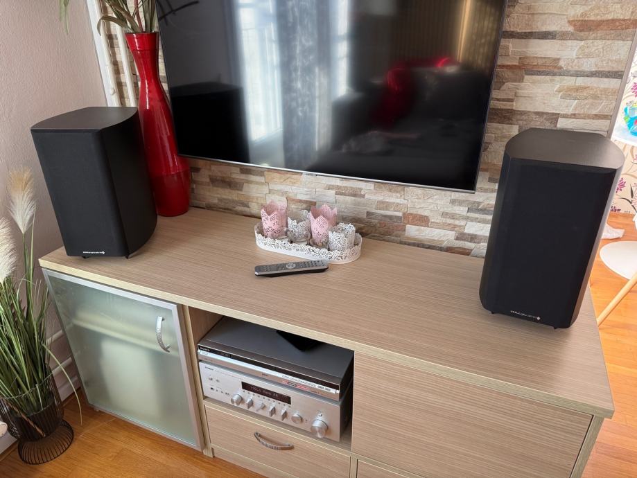 Prodajem zvučnike Wharfedale Diamond 9.2 u crnoj boji. Radi se o poznatoj seriji zvučnika britanskog proizvođača Wharfedale, koji su stekli dobru reputaciju zahvaljujući omjeru cijene i kvalitete zvuka. Model 9.2 spada u kategoriju bookshelf zvučnika s dva drivera – wooferom i tweeterom – te bass-reflex otvorima smještenim na prednjoj strani kućišta.