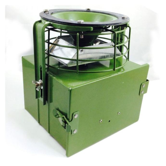 Rasipač hrane s robusnim metalnim kućištem otpornim na vremenske uvjete i zaključavanje lokotom (nije uključen), kontroliran preko digitalnog sata, raspodjela (1 do 6 puta dnevno)