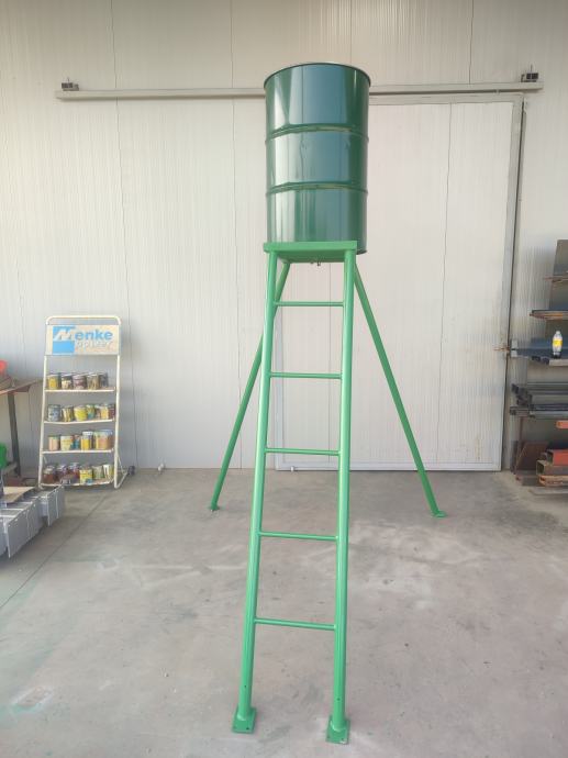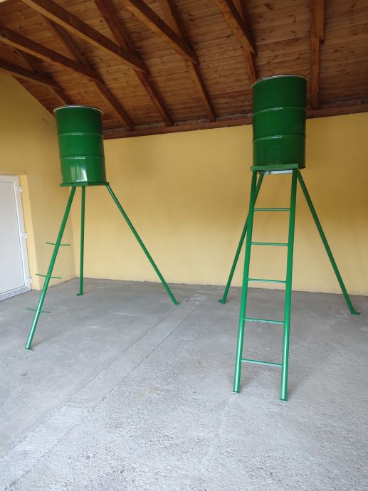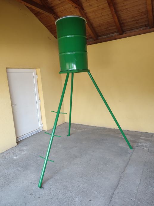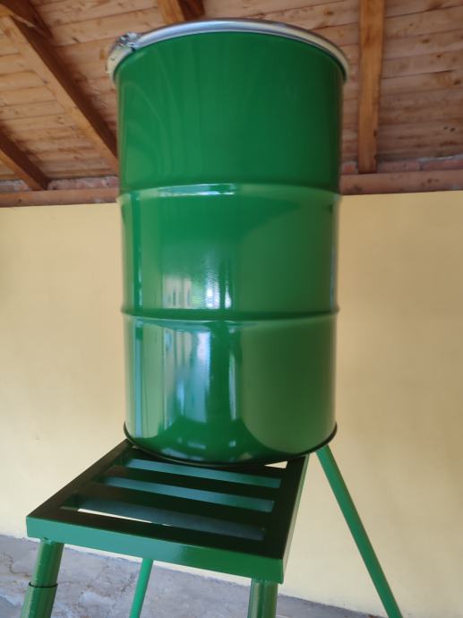Automatska hranilica pogodna za lovišta kao i druge namjene izrađena na metalnom postolju s metalnom bačvom od 200l i Rusanovim automatom, solarom i baterijom s garancijom od jedne godine.