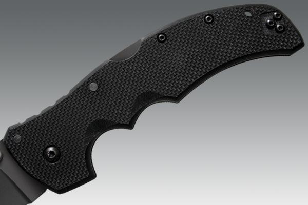 Drška je robusna,hrapava izrađena od G-10 materijala (kombinacija fiberglasa i pvc vlakana).