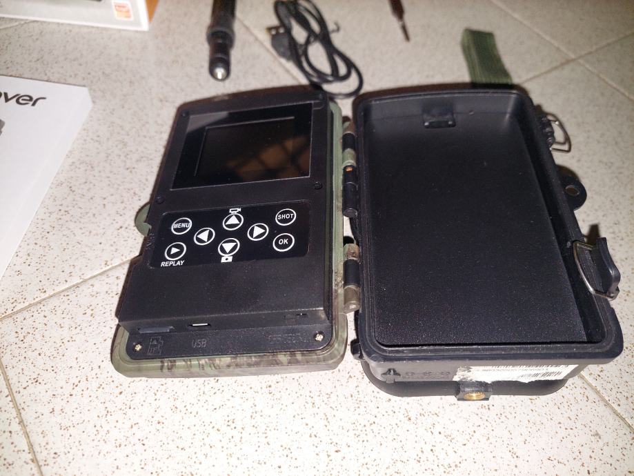 Kamera dolazi s Intenso 32GB microSD karticom, solarnim panelom koji u sebi ima bateriju i ostalom pripadajućom opremom vidljivo na slici.