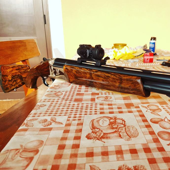Prodajem navedenu sačmaricu u savršenom stanju. Drvo visoke klase, bijela glava sa gravurama. Cijevi 66cm. Selektor okidanja. 5 mobil čokova. Kožni original kofer. Remen riserva. Molim bez zamjena.