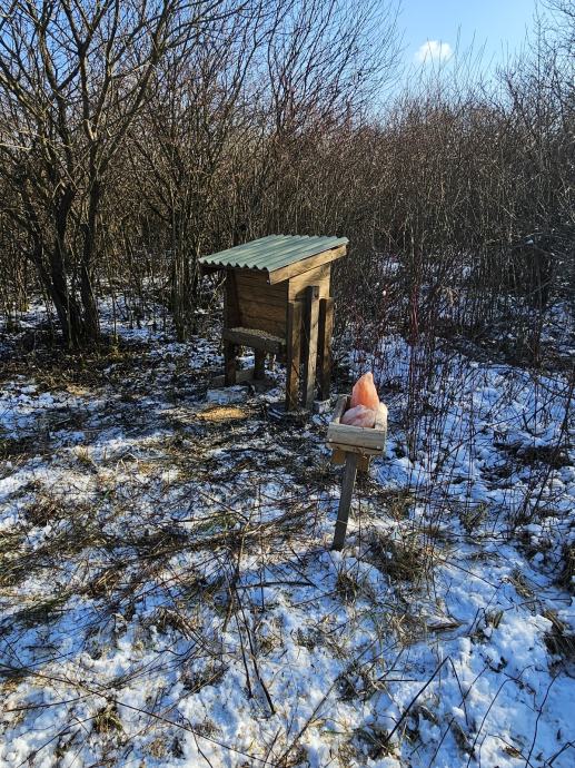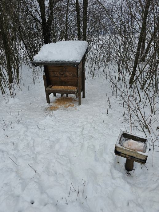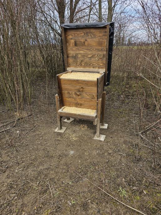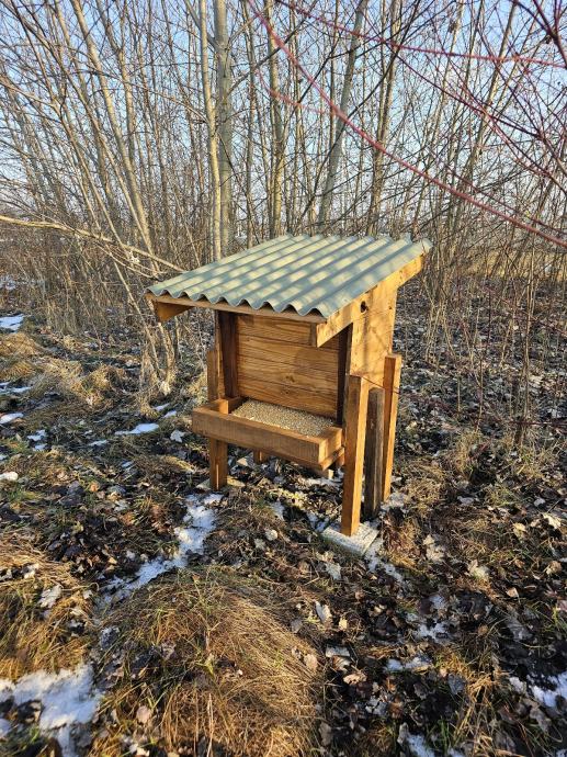 Prodajem razne hranilice kapaciteta od 50-150kg. Izrađene su tako da se jedna hranilica koristi za sitnu i srneću divljač. Hrana cijelo vrijeme ostaje suha i pravilno skladištena. Lako se postavlja ili po potrebi preseli na drugu lokaciju. Podnica i noge izrađene su od hrastovine dok je ostatak izrađen od jelovine.