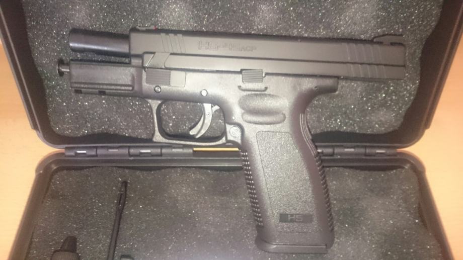 Prodajem HS 45 ACP, pištolj je nov. Niti jedam metak nije ispaljen, pištolj na sebi ima optičke ciljnike od pištolja HS XDM, posjeduje dva spremnika i pribor za čišćenje. Mogućnost zamjene za 357 magnum.