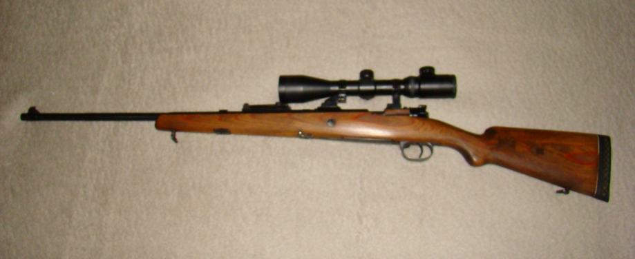 Karabin Mauser CZ M98 8x57 mm IS, sa optikom 1,5 - 6 x 50 svjetleće končanice, schwenk montaža za optiku i za svjetiljku na doljnjem dijelu usadnika.