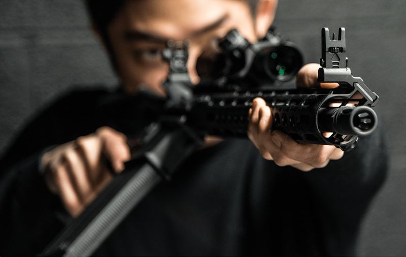 Kut od 45° omogućuje istovremeni pristup optičkom nišanu i mehaničkim nišanima.