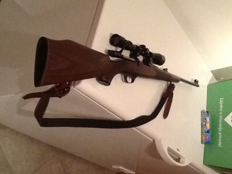 lovacka puska s uzljebljenom cijevi u cal 223 remimgton s optikom Narkonija 4-9X40 i sacmarica IZ cal 16 oruzje je u vrlo dobrom stanju